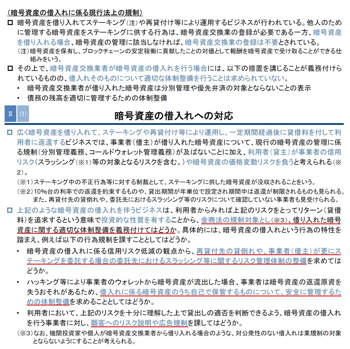 以下は暗号資産レンディングに課す具体的な規制内容です。