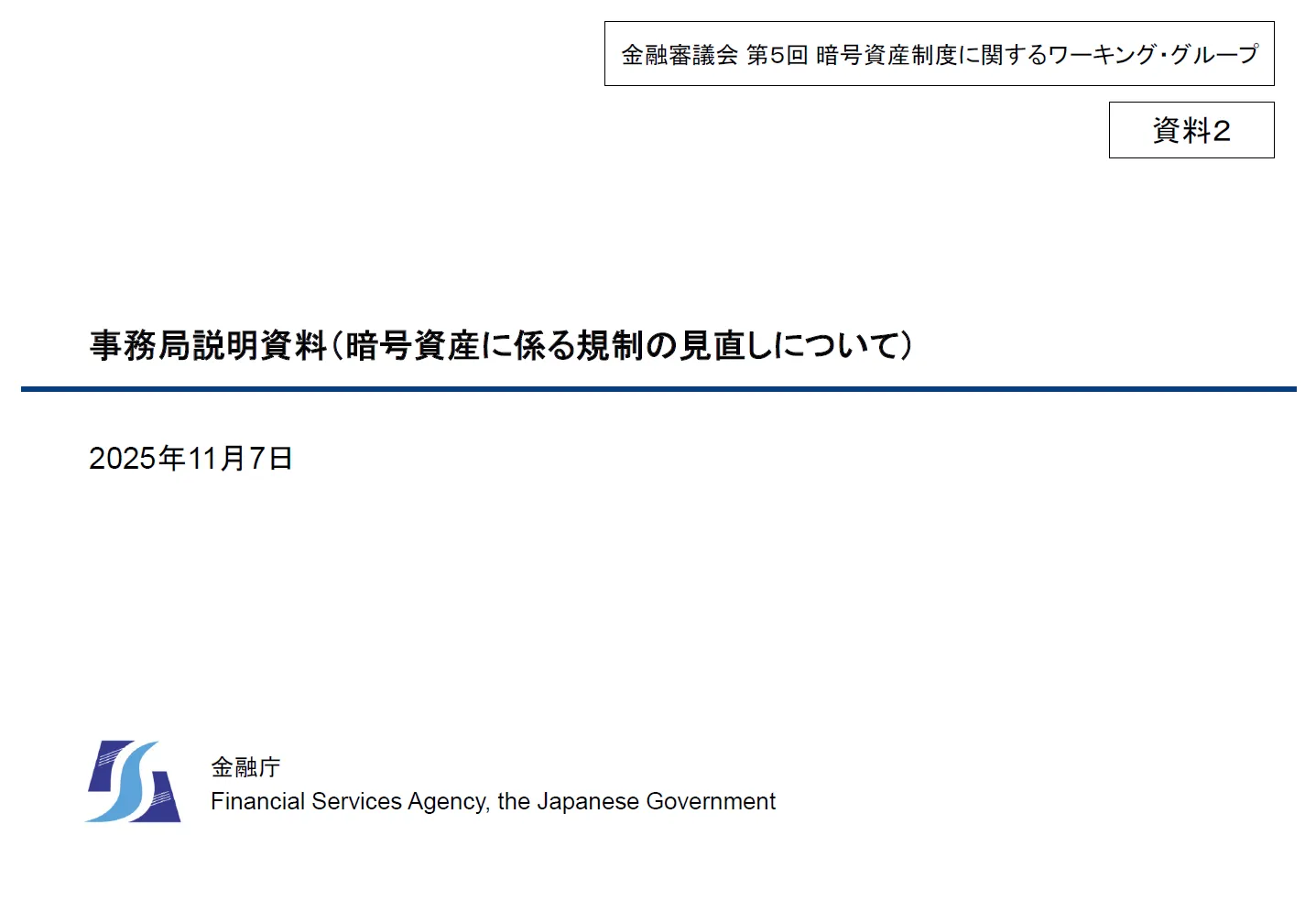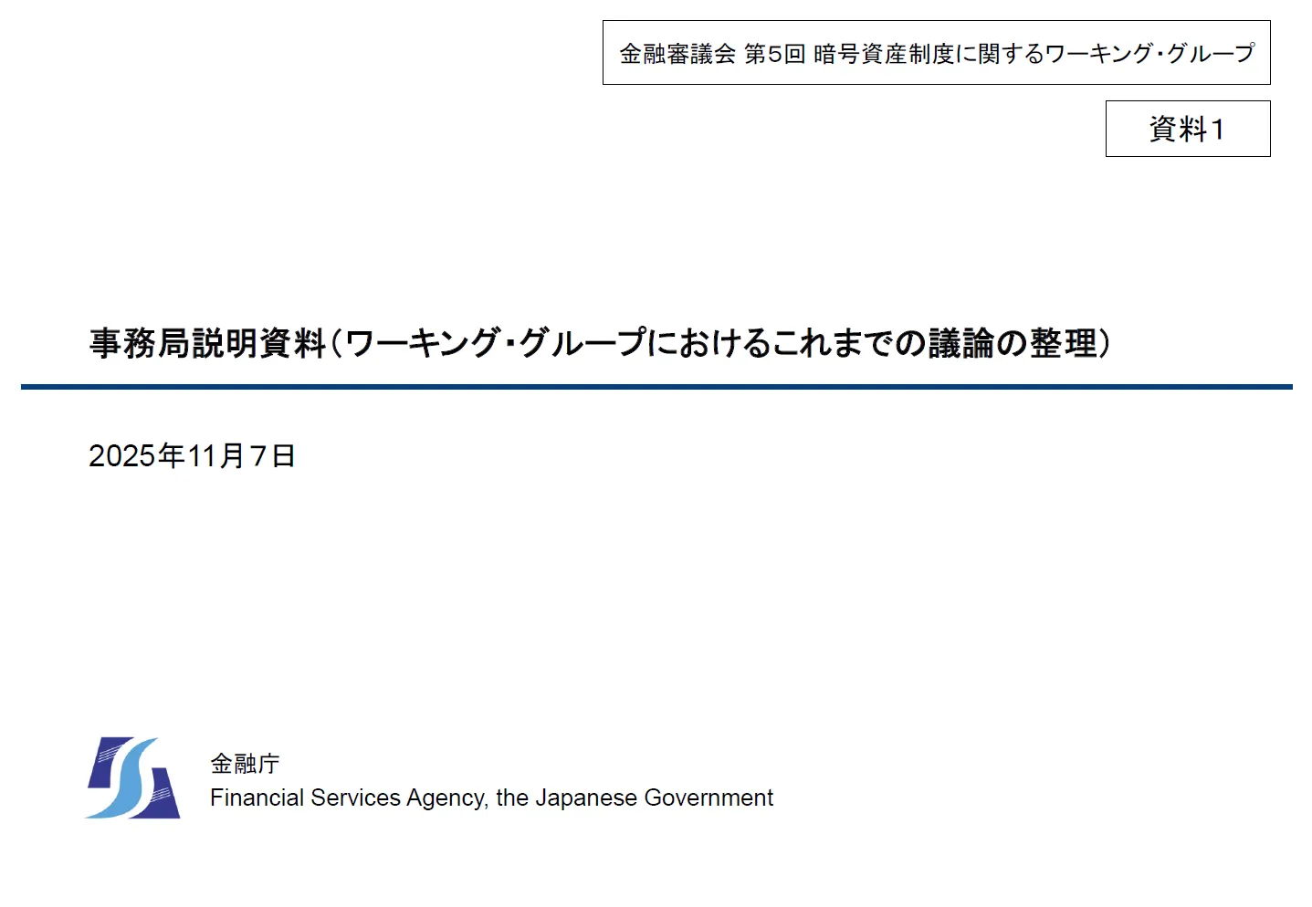 2025年11月7日、「暗号資産制度に関するワーキング・グループ(第5回)」が開催されました🏦