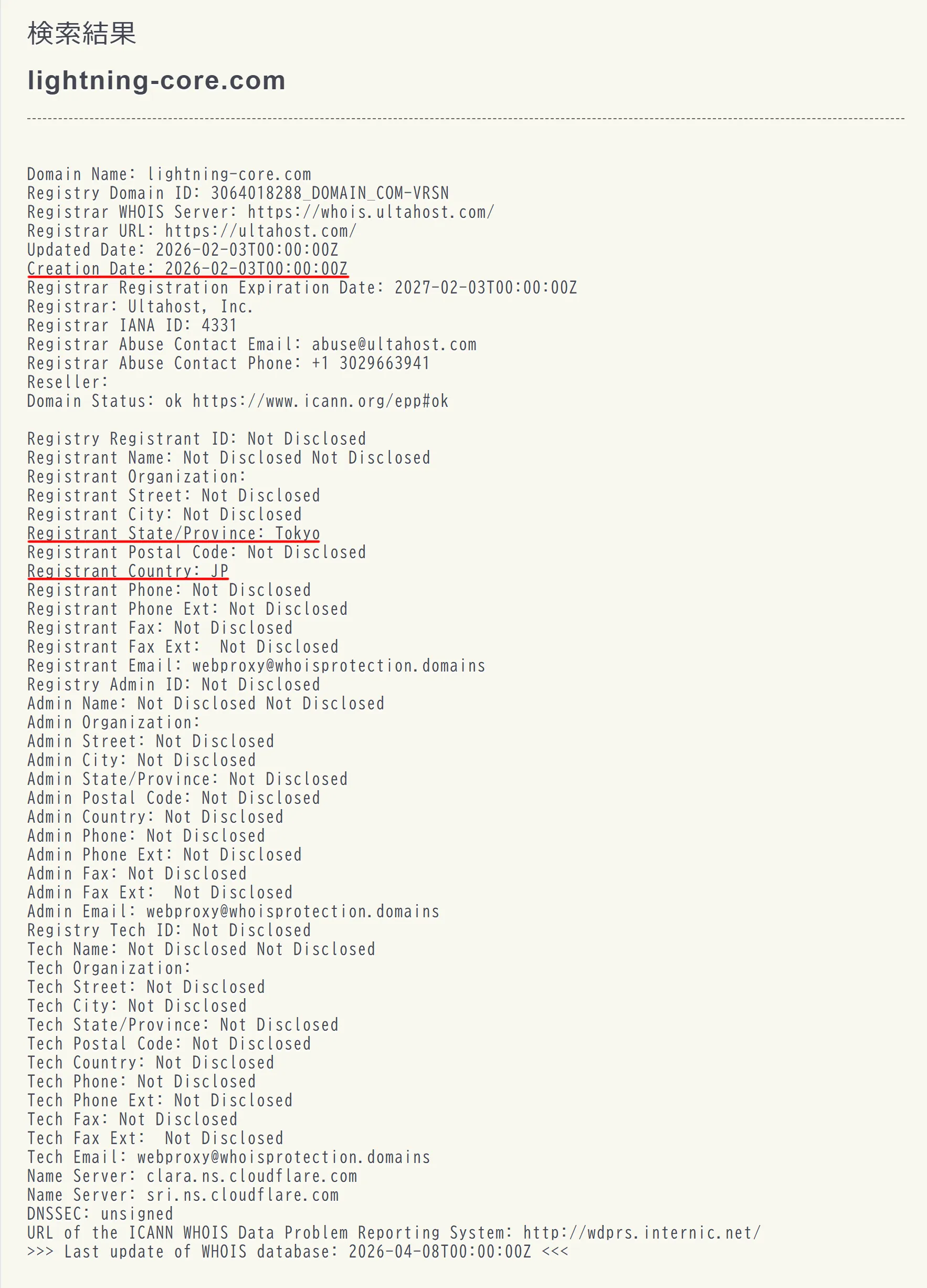 ライトニング・コアのドメインは、2026年2月3日に新規作成されています。